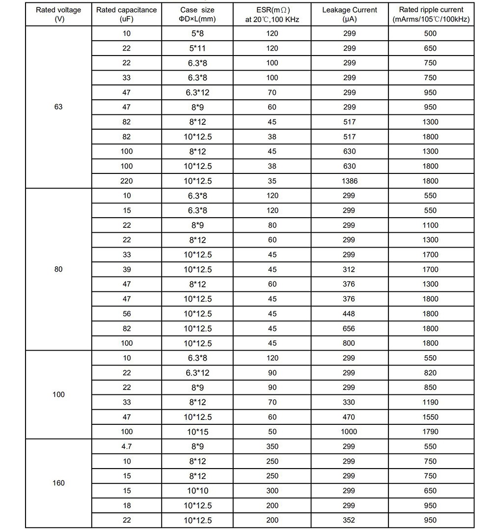 ● Low ESR, high ripple current, high voltage, long life ● Load life of 5000 hours at 105℃ ● RoHS Compliant