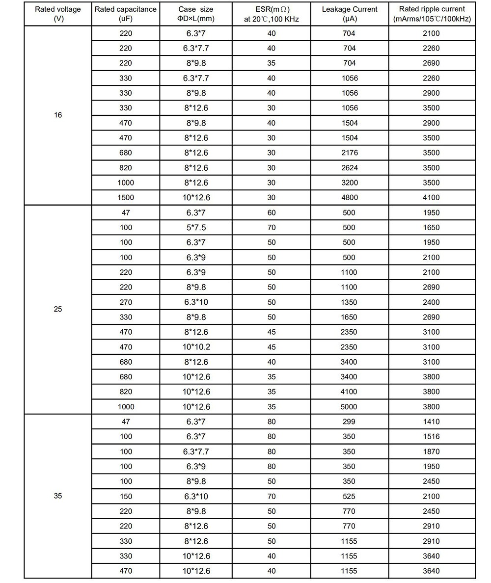 ● Low ESR, High ripple, miniaturized ● SMD type: lead free reflow soldering condition at 260℃ peak correspondence ● RoHS Compliant