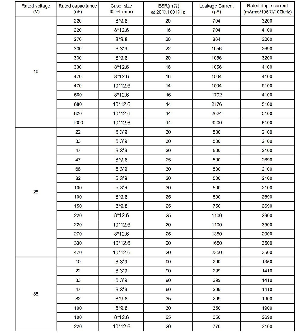 ● Super low ESR, High ripple, miniaturized ● SMD type: lead free reflow soldering condition at 260℃ peak correspondence ● RoHS Compliant