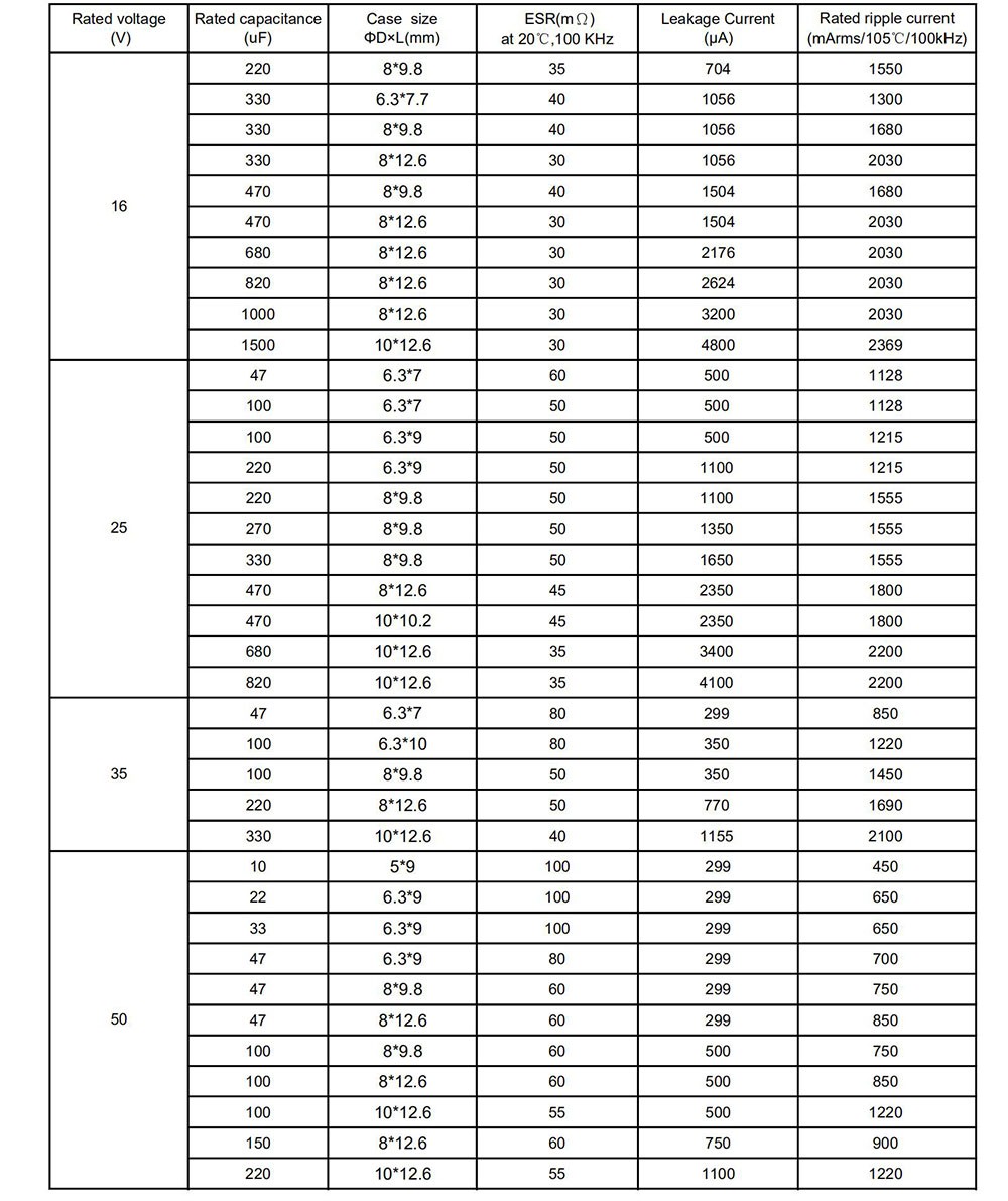 ● Low ESR, High ripple, miniaturized, high temperature ● SMD type: lead free reflow soldering condition at 260℃ peak correspondence ● RoHS Compliant
